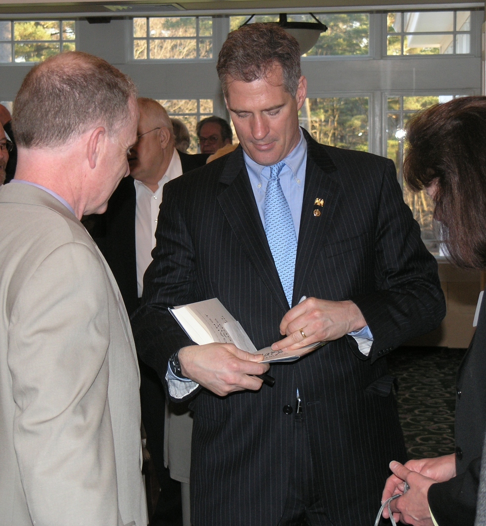 Last night Senator Scott Brown made an appearance at the Wollaston Golf Club for a book signing and early campaign stop. Approximately 220 people came to meet with the Senator and hear remarks on his upcomimg bid for re-election.