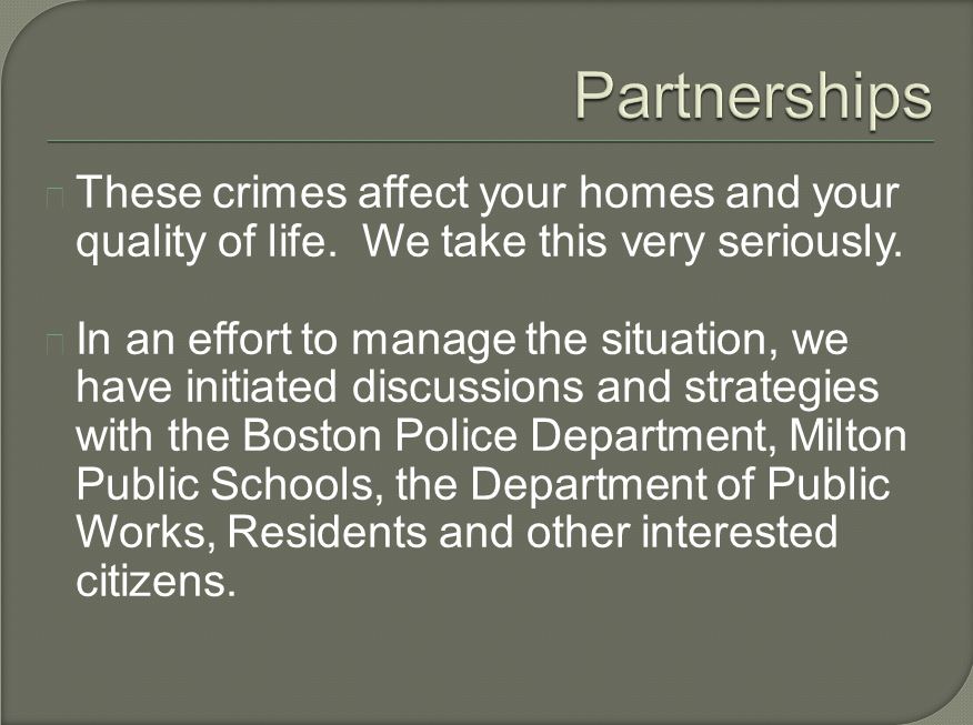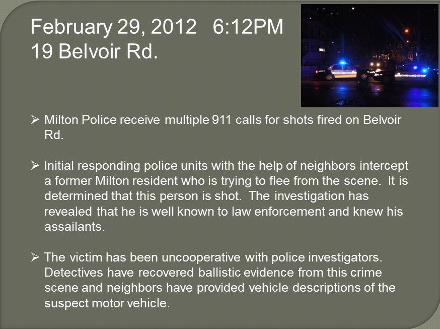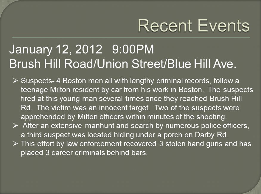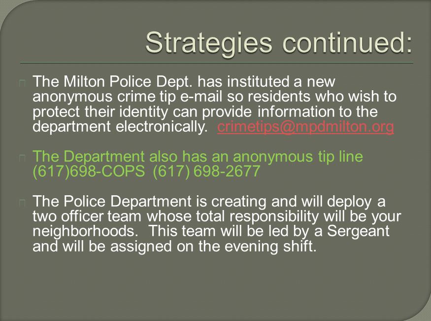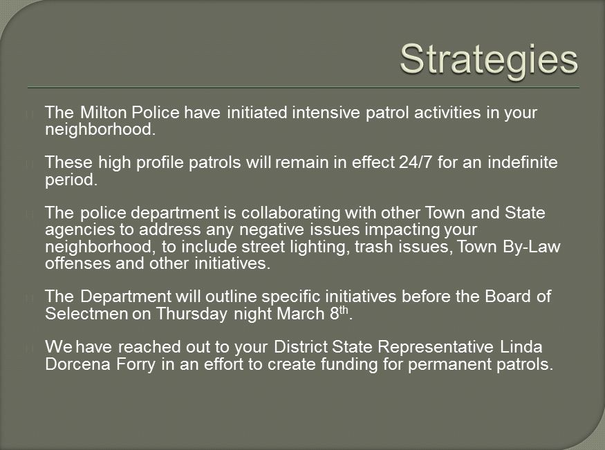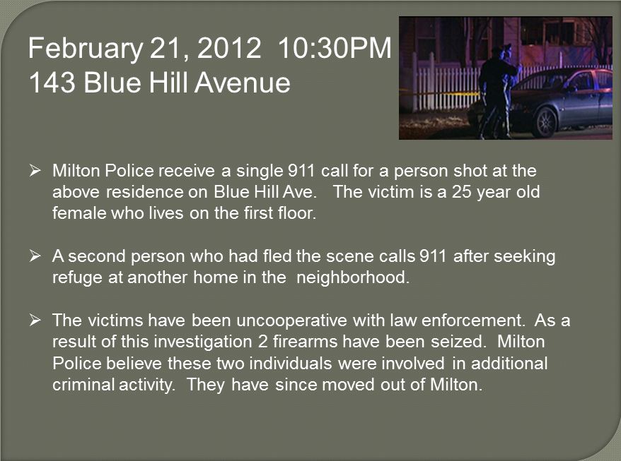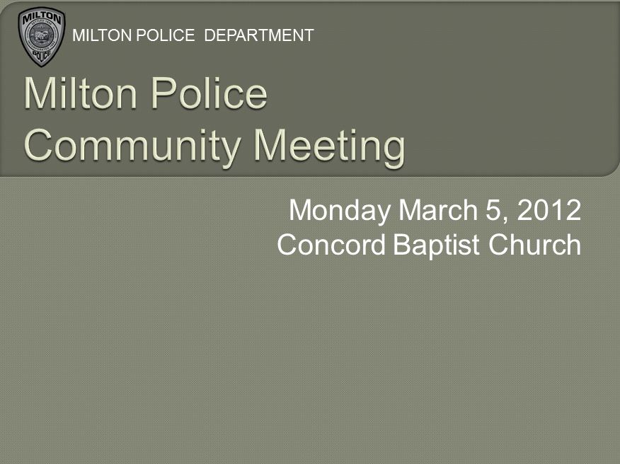 Following is the presentation given by the Milton Police Department at their community forum which was held last Monday. Our thanks to the Department for permission to publish.
