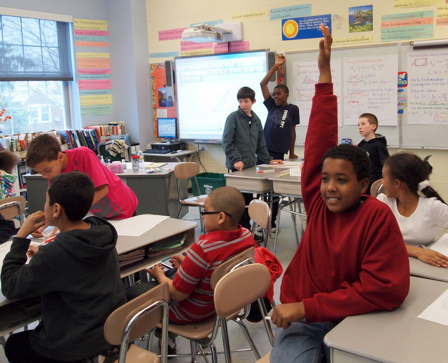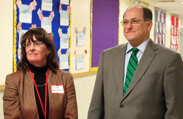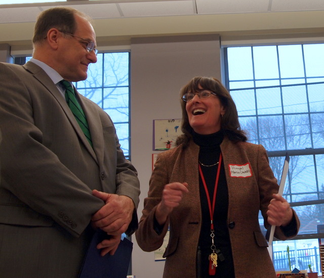 Yesterday Congressman Michael Capuano went to school, a couple schools in fact. He was at the Pierce Middle School and Tucker Elementary School before heading up Rt 138 for Fuller Village. Capuano’s congressional district now includes portions of Milton as a result of redistrciting and he was in town to visit.