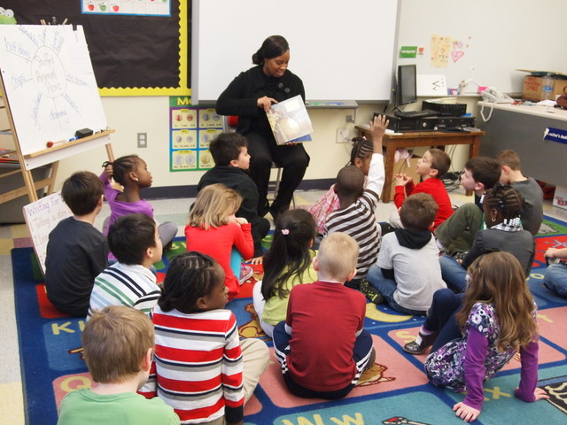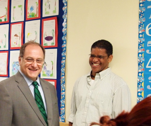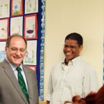 - School Site Council member Franklin Ollivierre and Congressman observe the students