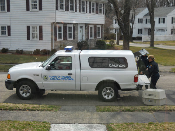 Nacny Bersani is Milton’s newly appointed animal control officer. Here are some shots of her dealing the with animal. Elizabeth Thomas, the woman who made the call, complimented Barsani on her prompt response and her professional handling of the sitauation that ensured safety of residents and humane treatment of the animal.